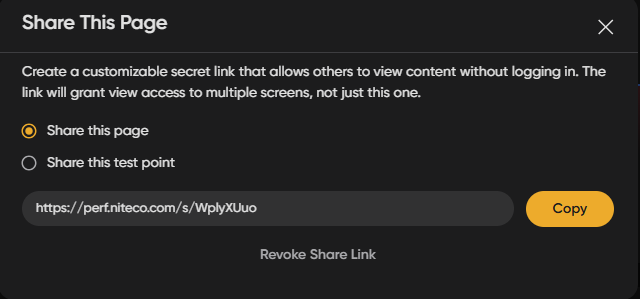 Users can now choose to share either a specific test point or always the latest one when sharing a page.
