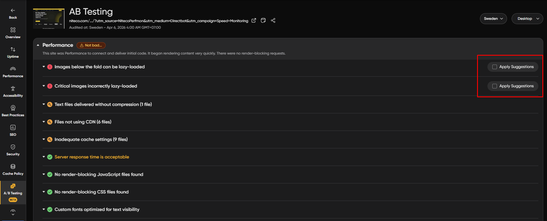 We’ve improved the A/B Testing flow by prioritizing applicable categories, making it easier to apply suggestions